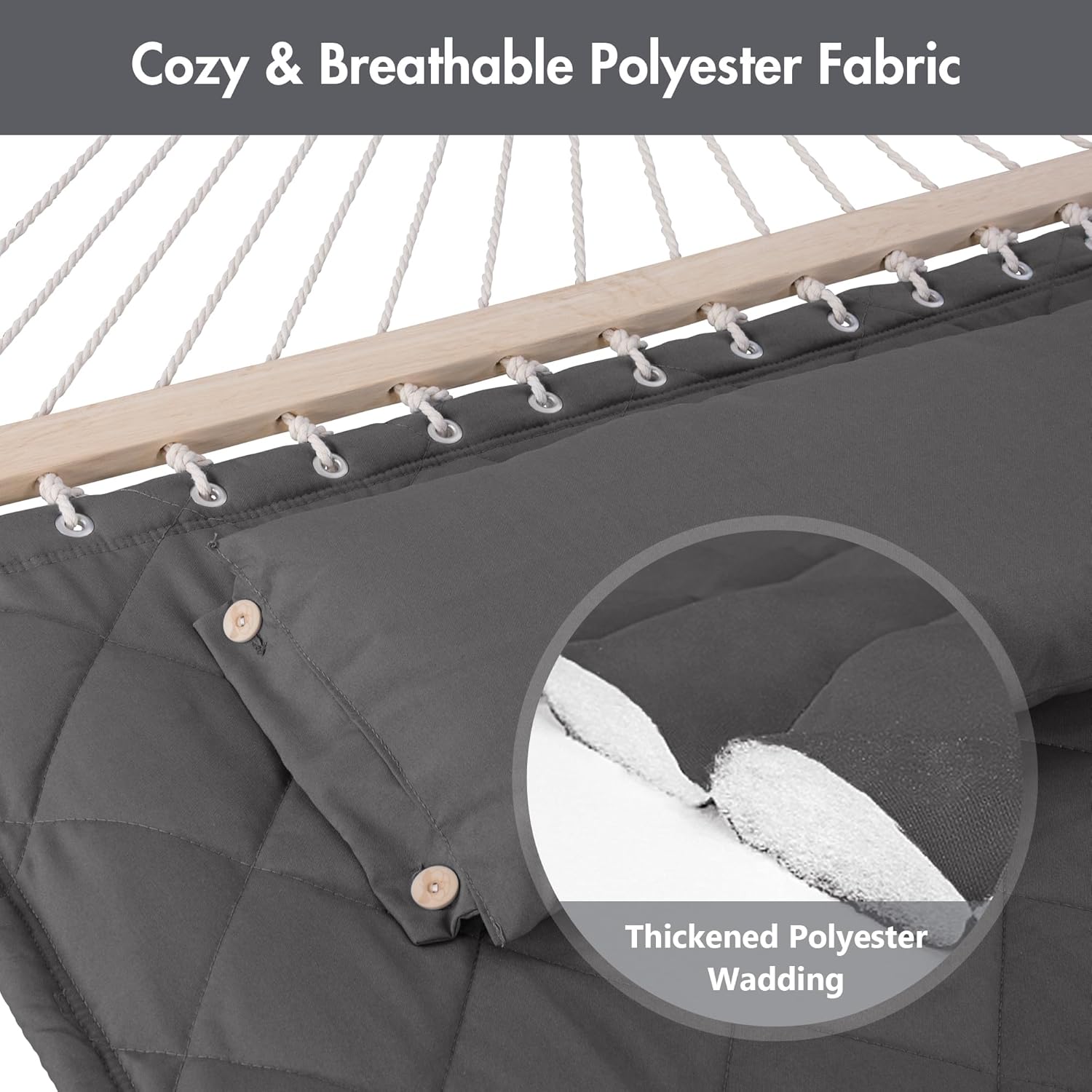 ANOW Double Hammock with 12FT Heavy Duty Steel Stand Included, 2 Person Hammock with Stand for Outdoors, 450 LBS Weight Capacity, Gray