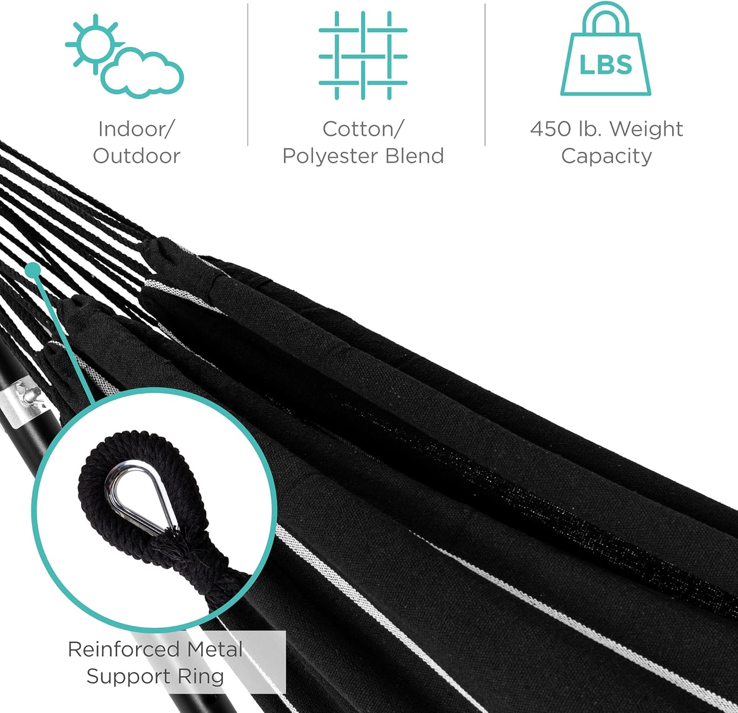 Best Choice Products Double Hammock with Steel Stand, Indoor Outdoor Brazilian-Style Cotton Bed w/Carrying Bag, 2-Person Capacity - Onyx