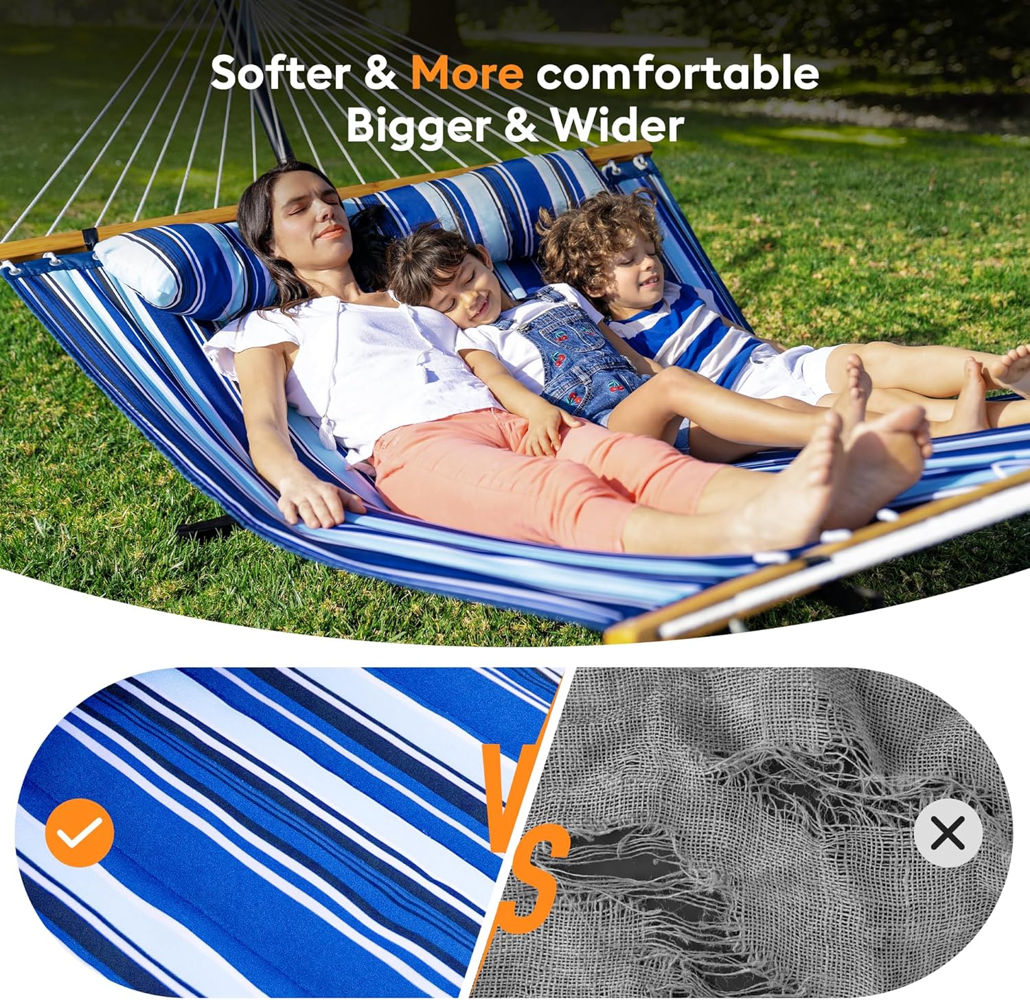 Double Hammock with Spreader Bar,Soft Pillow,Max Load 500lbs,Portable Hammock for Outdoor,Camping,and Backyard,Blue