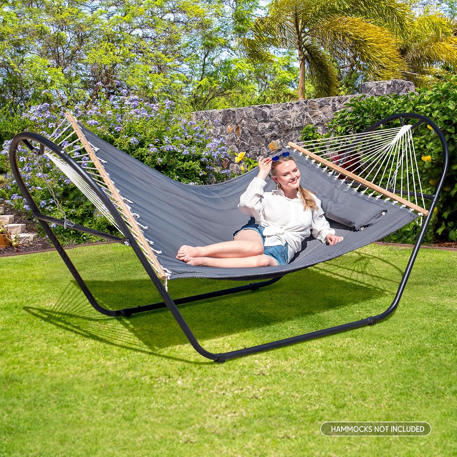SUNCREAT Universal Steel Outdoor Hammock Stand Only, Heavy Duty, Weather-Resistant Hammock Stand for Outside, Fits 9.5 to 14 Feet Long Hammock, 475-Pound Capacity, Patent Pending, Black