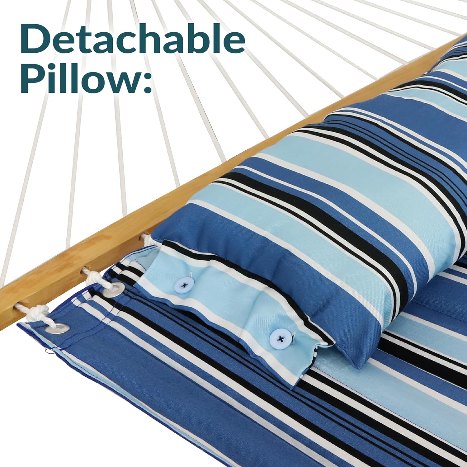 Sunnydaze Quilted Outdoor Hammock with Spreader Bars - Heavy-Duty 450-Pound Capacity Double Hammock for Outside - Misty Beach