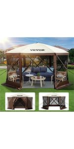 VEVOR camping gazebo tent has spacious area coverage and can fit up to 8 people. It is waterproof, bite-proof, and long-lasting with 300D oxford fabric and B3 gauze netting. Six private wind-proof clothes allow you to rest no matter how the weather is. The full accessories and pop-up design shorten the installation time. Are you ready to have fun with your friends outdoor?